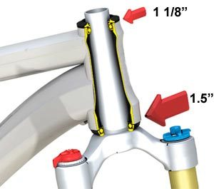 Чем больше диаметр штока, тем выше прочность и жесткость соединения «вилка-рама», но при этом может увеличиваться вес. Рама с рулевым стаканом для толстого штока может быть использована с более тонким путем установки соответствующей рулевой колонки (или проставок в существующую рулевую колонку), такие комплектующие называются «Reducer».
